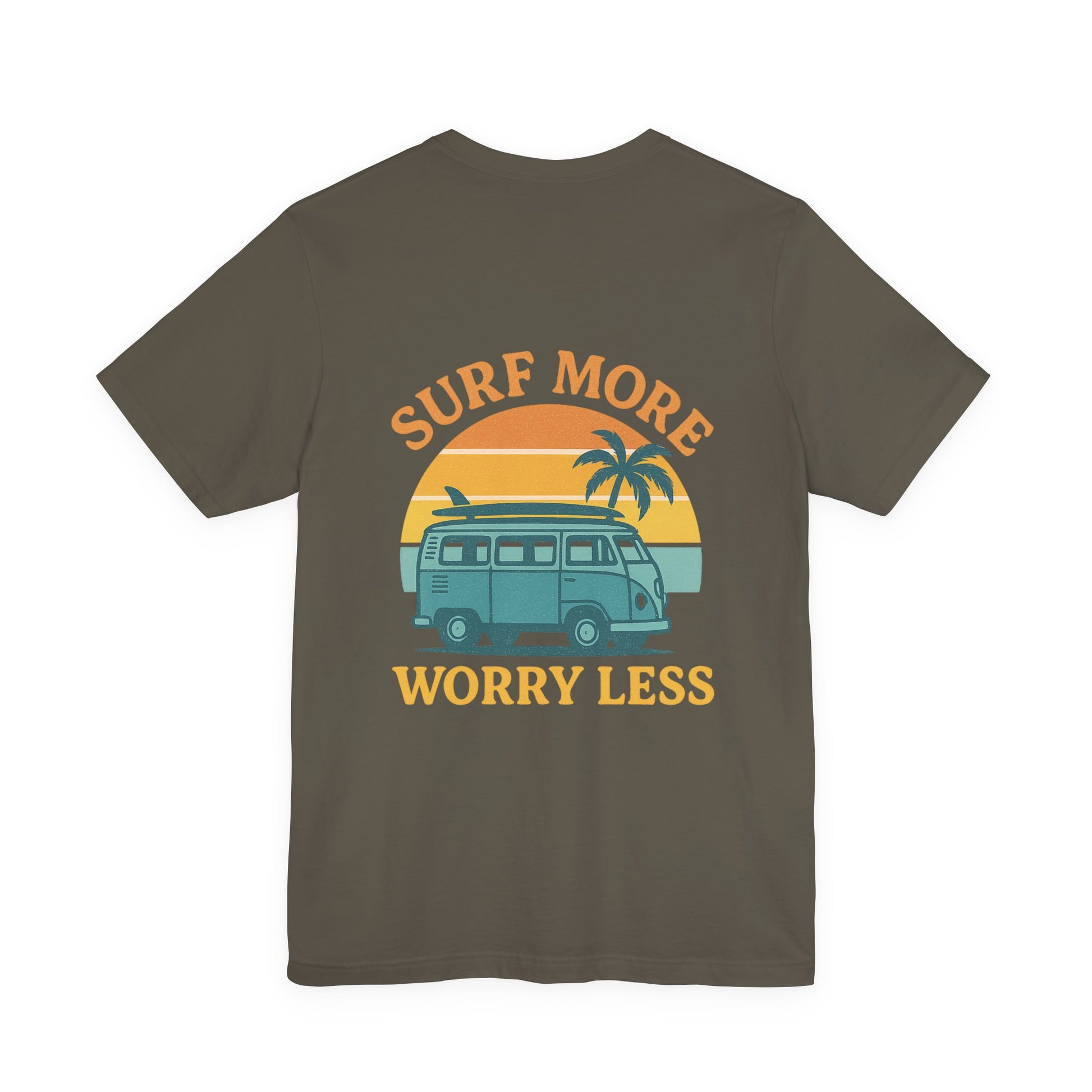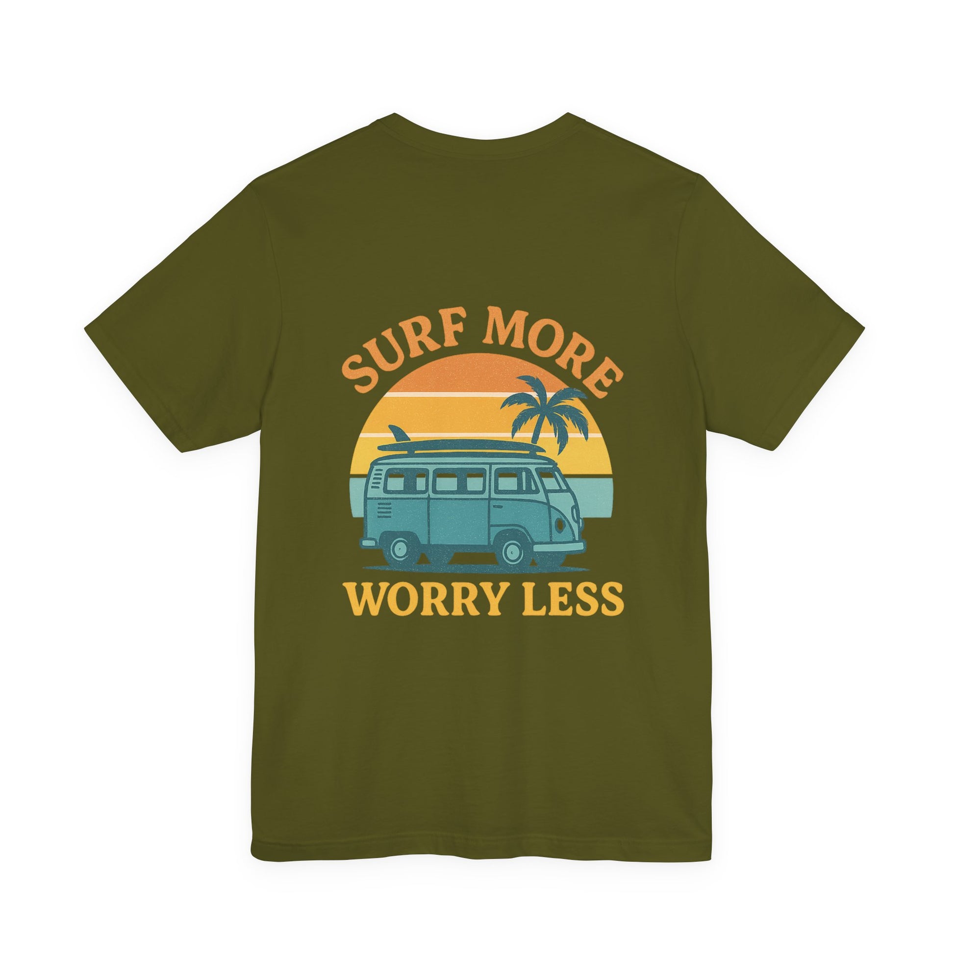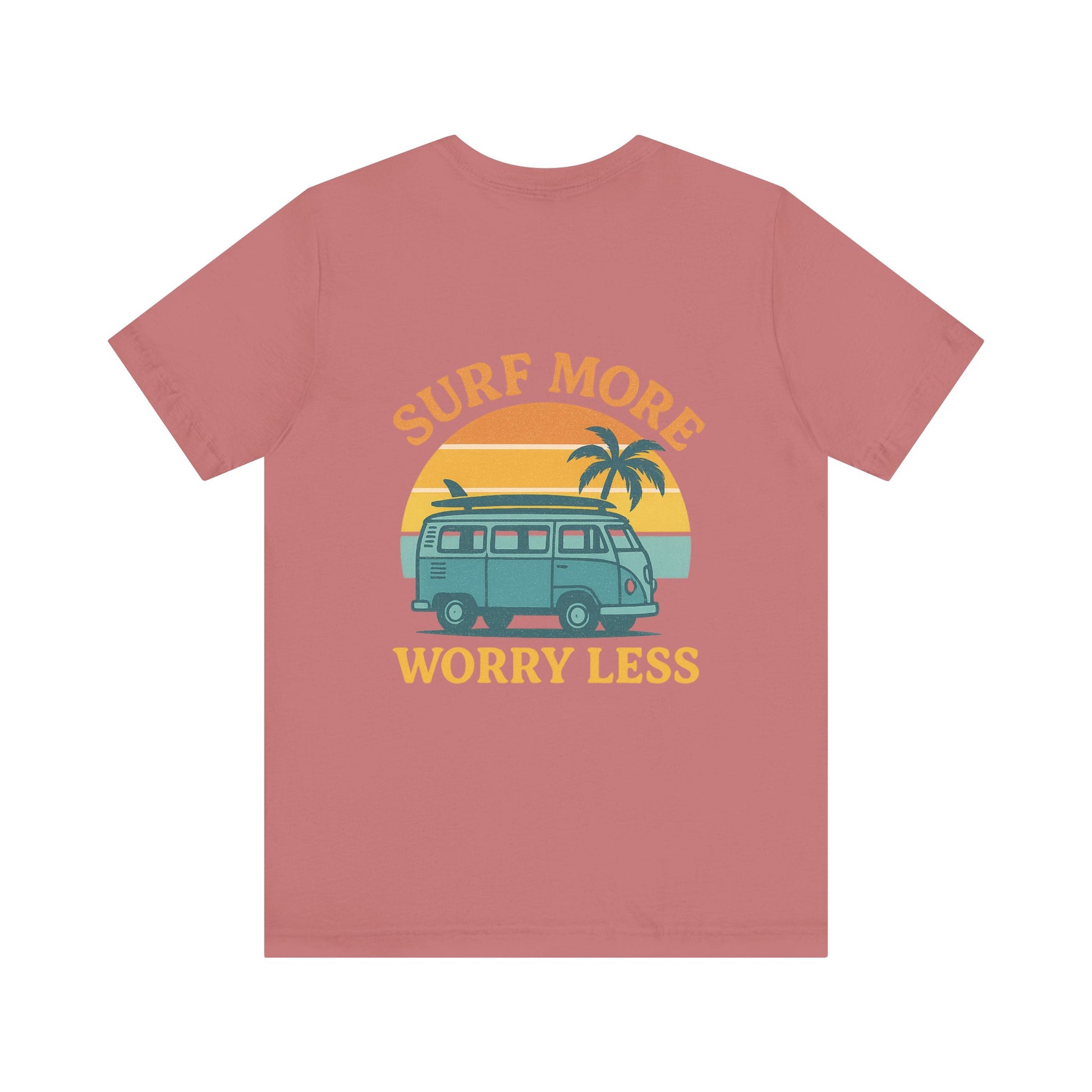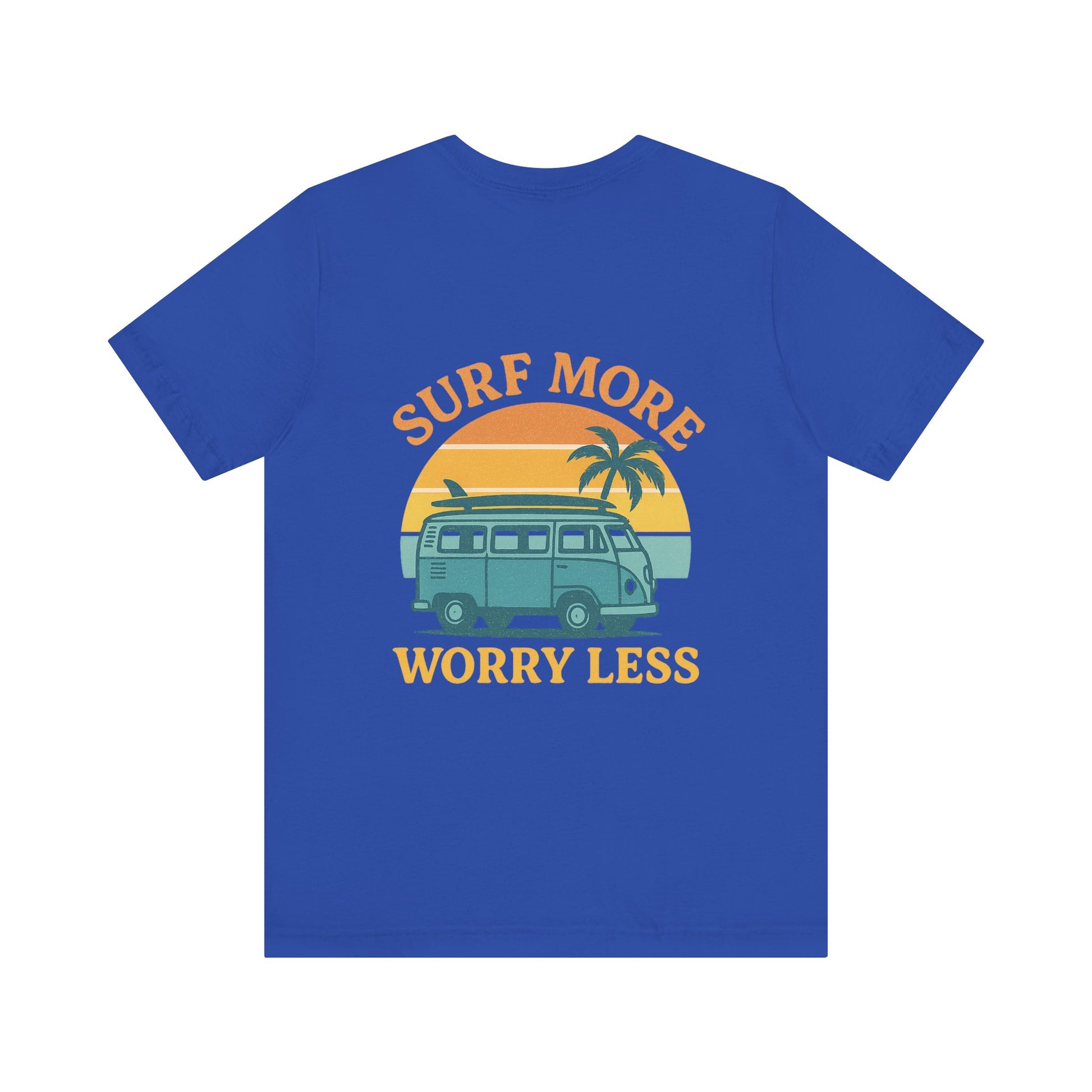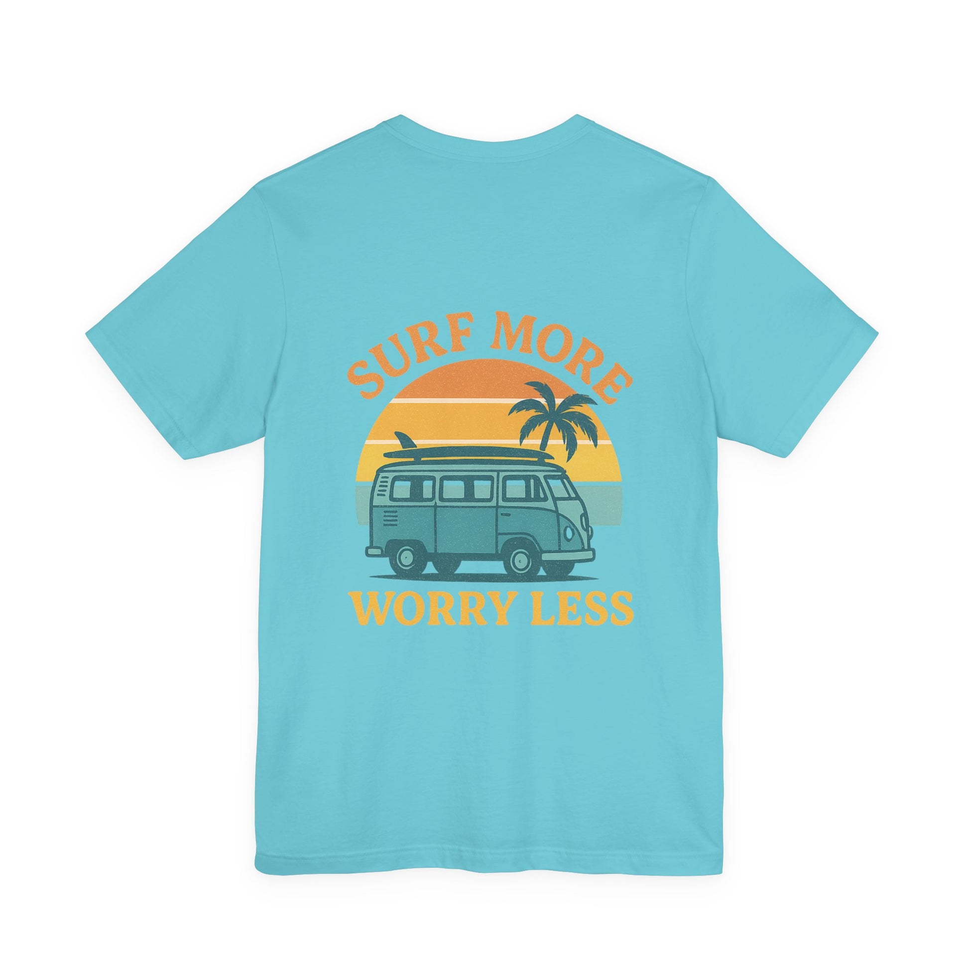 Logo Surf More Worry Less Back Side Design Unisex Jersey Short Sleeve Tee T-shirt